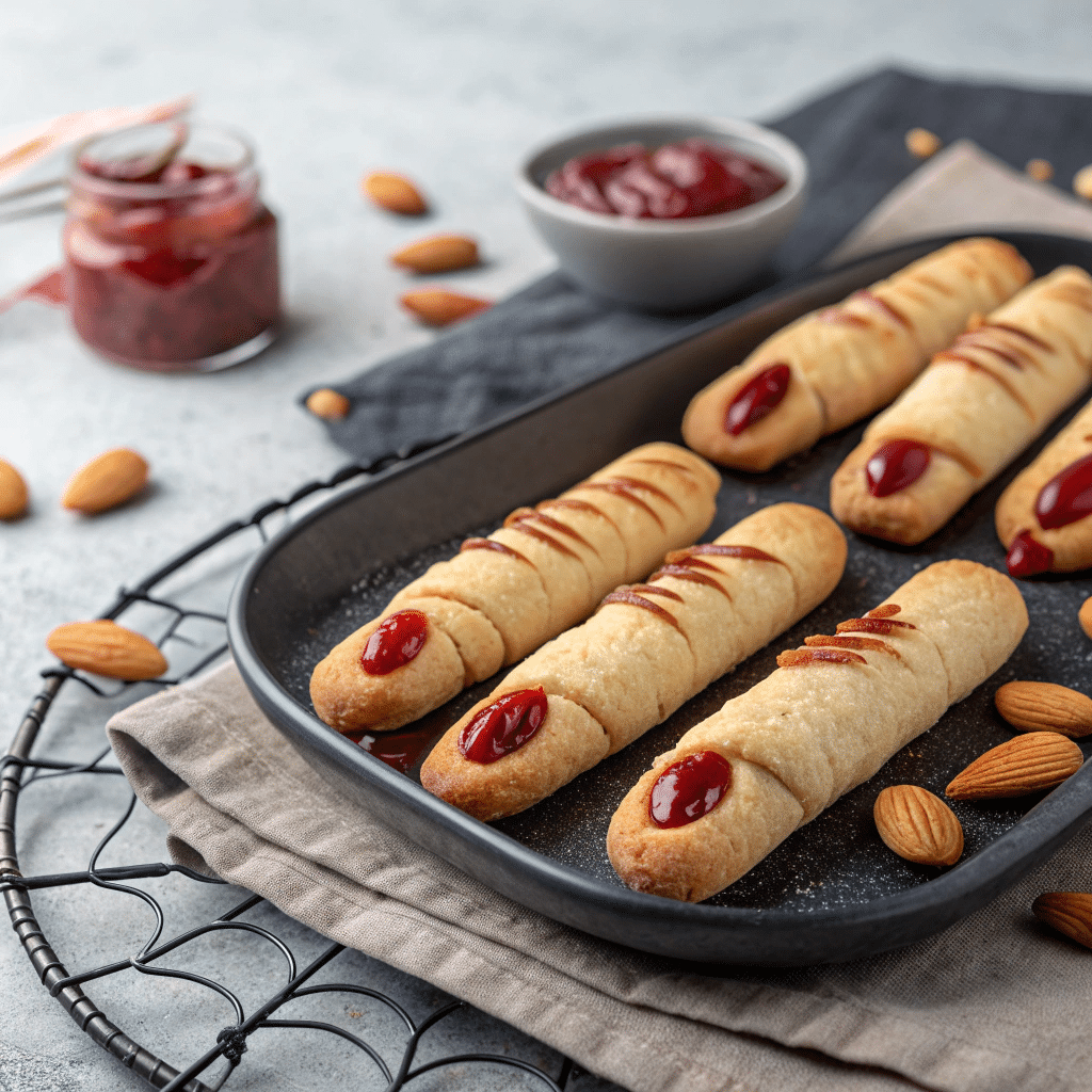 These Witch Finger Cookies are the ultimate spooky Halloween treat! Shaped like creepy witch fingers with almond “nails” and red …