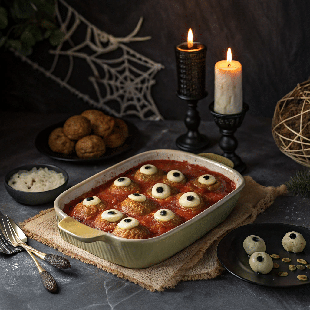 Looking for a creepy yet delicious dish to serve at your Halloween party? This Eyeball Mozzarella Meatball Bake is the perfect mix of spooky fun and cheesy comfort. Juicy meatballs topped with gooey mozzarella “eyeballs” and marinara sauce create a dish that’s both terrifyingly festive and irresistibly tasty. It’s quick to prepare, kid-friendly, and sure to impress your guests with its Halloween flair. Whether you’re planning a haunted dinner or just want to surprise your family, this recipe brings the perfect eerie vibe to your table while staying deliciously hearty.
