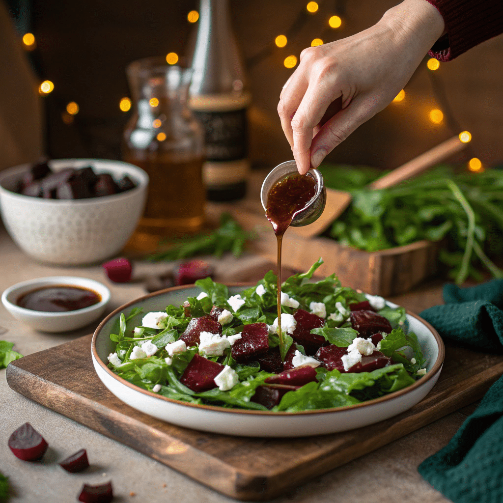 Roast beets ahead of time for convenience. Slice apples right before serving to prevent browning. Layer ingredients for a beautiful presentation, then drizzle dressing at the last moment. Garnish with extra goat cheese and herbs for a festive finish.