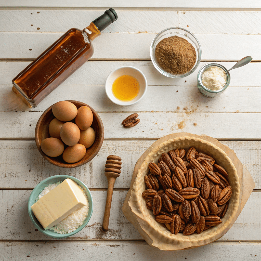 - In a large bowl, whisk corn syrup, brown sugar, eggs, melted butter, bourbon, vanilla, and salt until smooth.