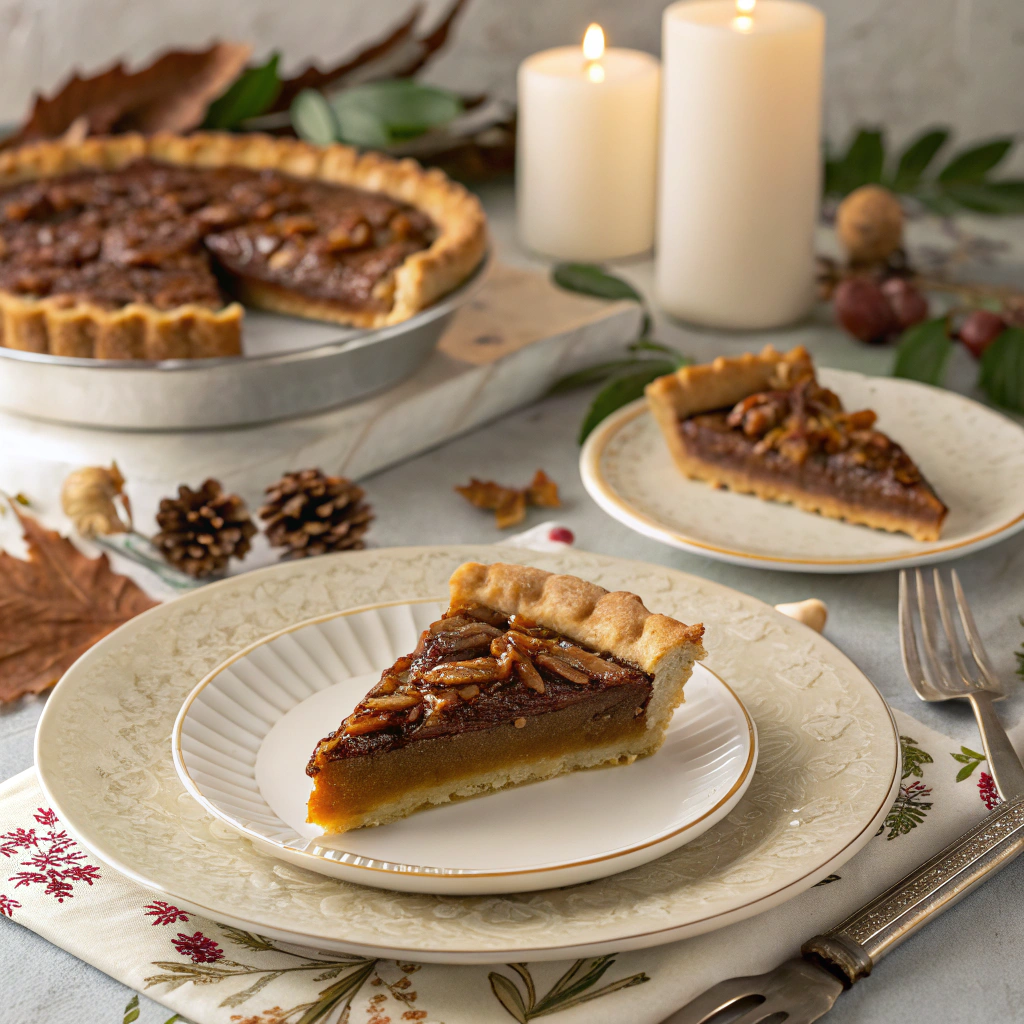 Thanksgiving Bourbon Pecan Pie is a decadent twist on the classic pecan pie. I remember my uncle bringing one to our family gathering, and the subtle notes of bourbon blended perfectly with the caramel-like filling and toasted pecans. It added warmth and depth that made every bite unforgettable. With its flaky crust, gooey filling, and a hint of whiskey, this pie is a sophisticated dessert that steals the show at the Thanksgiving table.