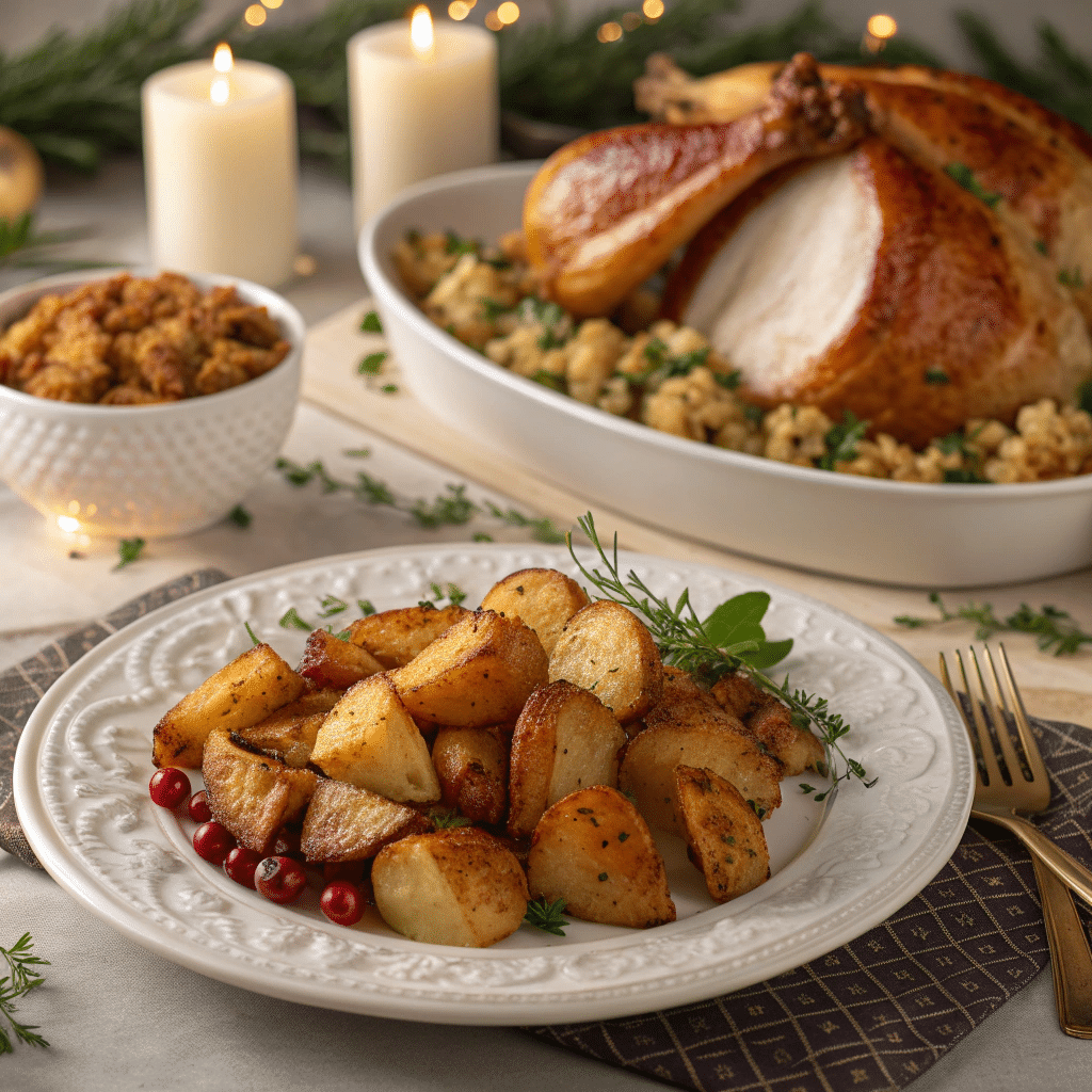 Golden, crispy, and cheesy — Parmesan Roasted Potatoes are the perfect bite-sized side for Thanksgiving. I remember my cousins sneaking crunchy potato wedges straight off the baking sheet before dinner was even served. The nutty Parmesan, garlic, and herbs coat each potato piece with irresistible flavor. With their crisp edges and tender insides, these roasted potatoes are an easy crowd-pleaser that pairs perfectly with turkey and gravy.