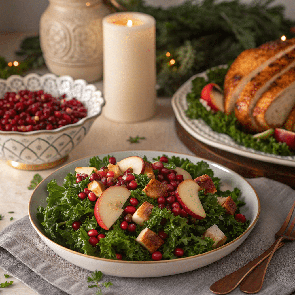 Thanksgiving Pomegranate Kale Salad is a vibrant and nutritious side dish that adds freshness and color to the holiday table. I remember my cousin making it one year with ruby-red pomegranate seeds that sparkled like jewels against the dark green kale. Tossed with a light citrus dressing, it brought a refreshing crunch that balanced the richness of turkey, stuffing, and gravy. It’s healthy, festive, and full of seasonal flavors.
