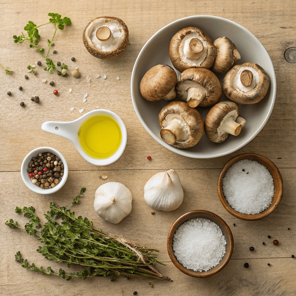 - In a large bowl, toss mushrooms with olive oil, garlic, thyme, salt, and pepper until evenly coated.