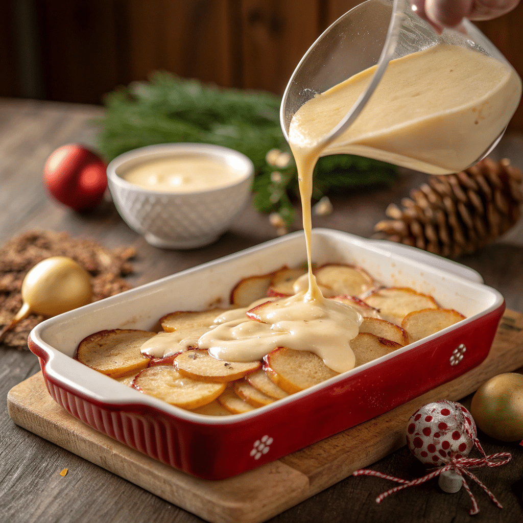 Slice potatoes thin and even for consistent cooking. Let the dish rest 10 minutes before serving so it sets. Bake uncovered at the end for that golden crust. Fresh herbs add both aroma and presentation value.