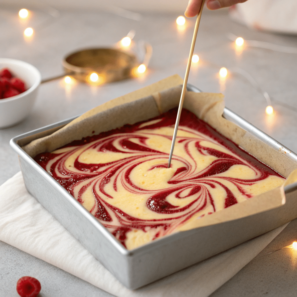 1. Make the raspberry swirl: In a small saucepan, cook raspberries over medium heat until broken down (about 4–5 min). Stir in sugar if needed. Press through a fine mesh strainer to remove seeds. Let cool slightly.